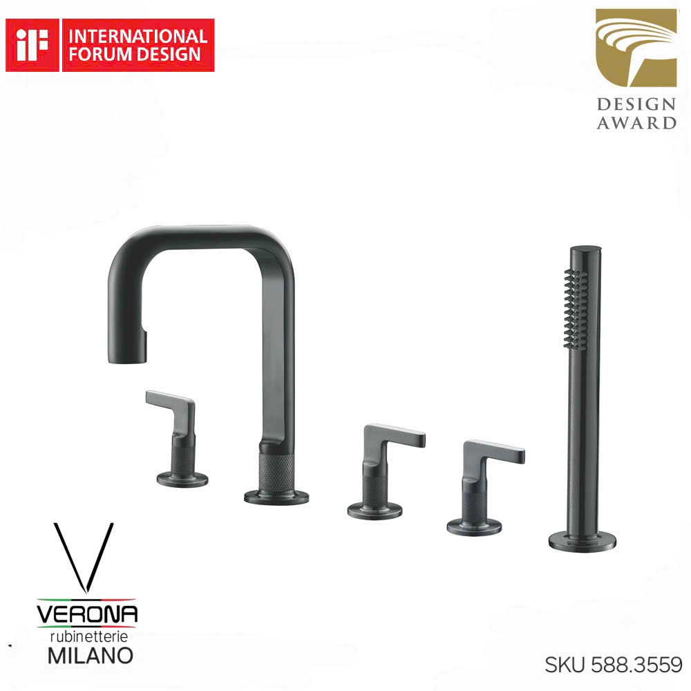 Sen cấp bồn tắm gắn bàn đá 5 lỗ VERONA INSICO với họa tiết Knurling trạm khắc kim loại