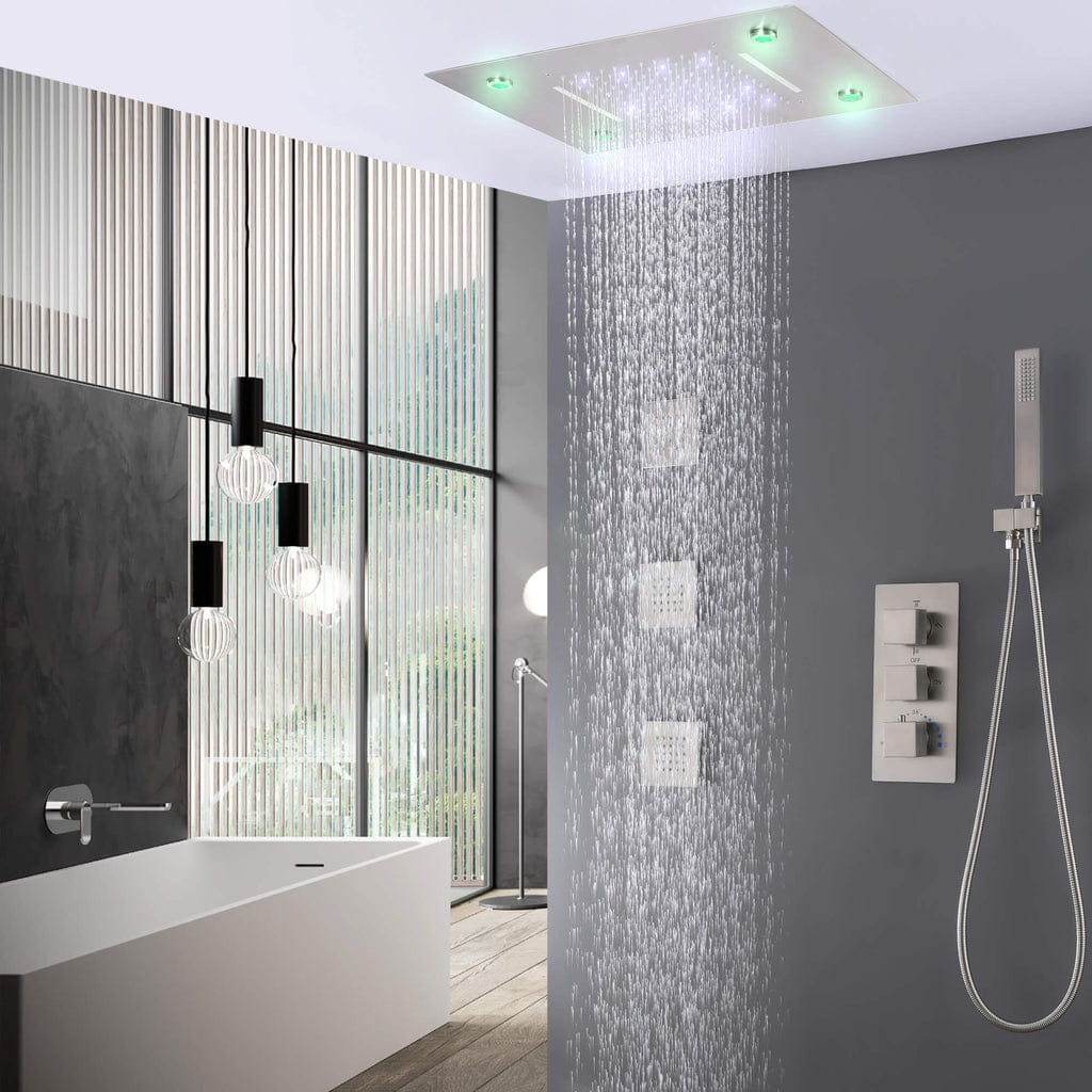 Sen tắm âm tường Massage VE-31859, dàn mưa âm trần với đèn Muilti Led ,bộ trộn ổn nhiệt vận hành cơ học